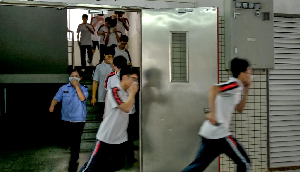本次演練依據《廣東省校園應急避險和安全防范疏散演練達標單位驗收標準》設置演練科目,按照演練準備、演練實施、演練總結三個環節進行實戰性演練。演練中,參演學生采用規范動作成兩路縱隊彎腰低姿捂口鼻緊張有序地進行應急避險和安全疏散;工作人員按照預案分工實施人員疏散指引、滅火救援、防護救護等。整個演練過程環環相扣,反應迅速,處置得當。