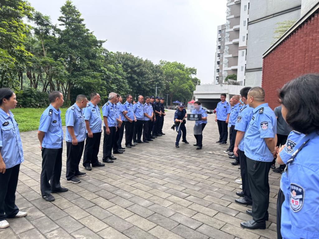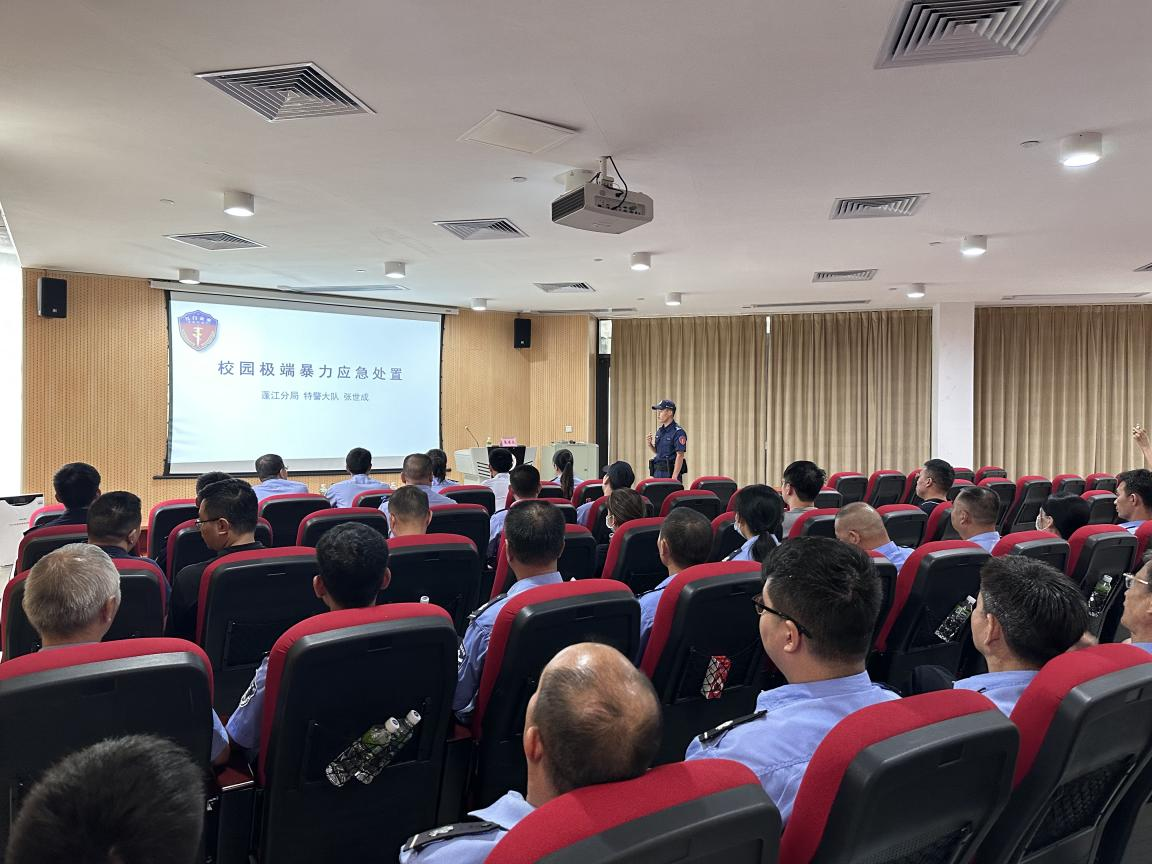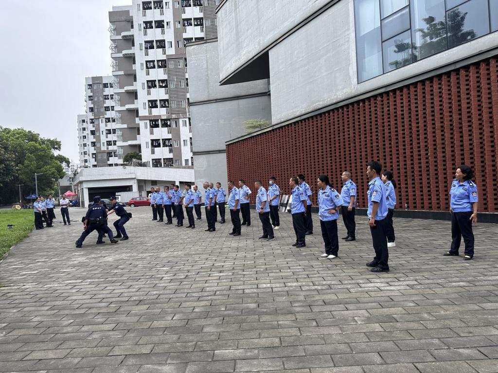 為增強學校安保人員安全防范意識,提高應急處突能力,6月15日下午,我校與江門市公安局蓬江分局聯合開展校園反恐防暴應急處置培訓。江門市公安局蓬江分局團委書記朱茸、副書記鄧超榮、副書記鐘金玲,國保大隊教導員盧永耀,以及新城派出所、巡特警大隊的同志,五邑大學全體保衛干部、校衛隊員參加培訓活動。