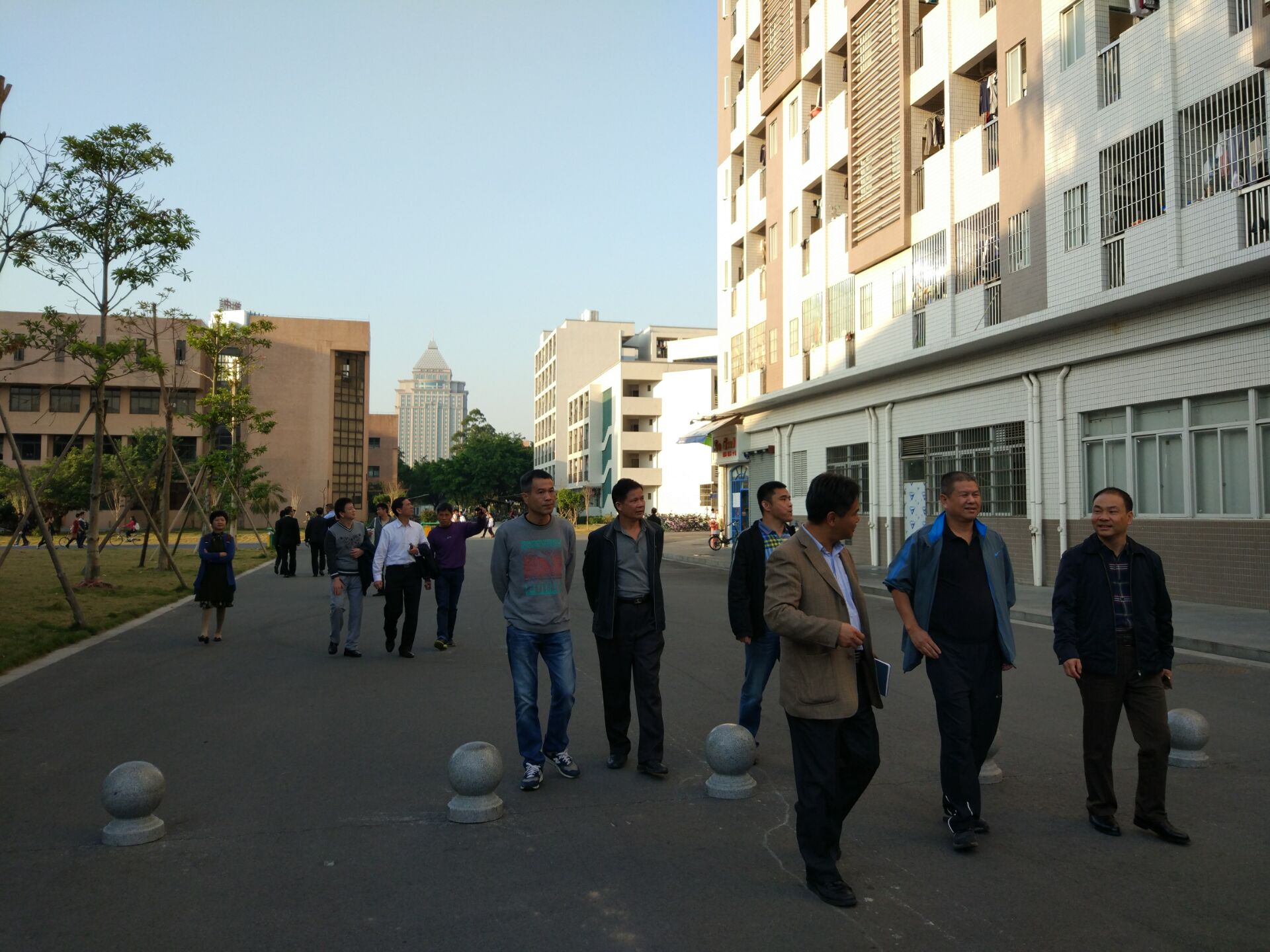 座談交流后,安保處的全體人員帶領暨南大學的同行沿著學校校道、學生宿舍區、北主樓監控室、北門和十友樓校史展覽室等進行了實地的考察和參觀。來賓們對我校交通管理、視頻監控系統建設和交通測速設備建設等提供了很多好的意見和建議。