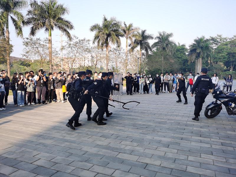 12月29日下午,繼而在學生綜合服務中心舉行了"反恐宣傳教育進校園“系列活動,各學部(院)學生代表等約150人參加了此次活動。活動內容為反恐宣傳教育講座和反恐裝備展示及應急演練等項目。講座期間,蓬江公安分局警官王啟軍就反恐防暴知識的概念以及恐怖襲擊手段等進行了全面深入的講解,通過典型案例、播放視頻等方式,讓在場學生充分了解新形勢下反恐工作的迫切性和重要性。在反恐裝備展示及應急演練區,眾多反恐裝備吸引了同學們的積極參與,現場熱烈氛圍讓師生們在切身體驗中了解、在觸目驚心下牢記、在交口稱贊中分享,確保了宣傳教育活動的質量和水平。