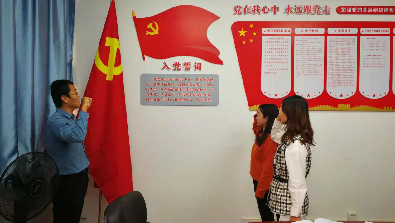 會前,支部新接收的兩名預備黨員舉行了入黨宣誓儀式。(文/圖 機關一總支第五黨支部)