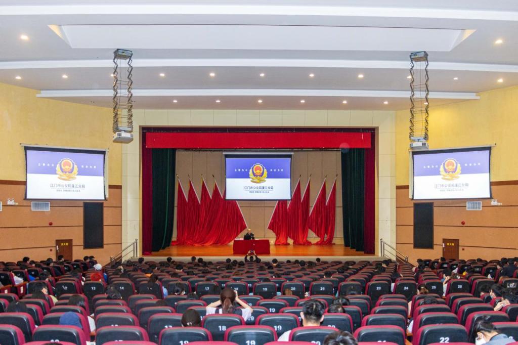 11月16日,江門市公安局蓬江分局在我校呂志和禮堂開展反詐知識講座。江門市公安局蓬江分局刑事偵查大隊大隊長鄭國濃、新城派出所政治教導員譚炎焜等8名同志出席,學校學生干部共300余人參加。