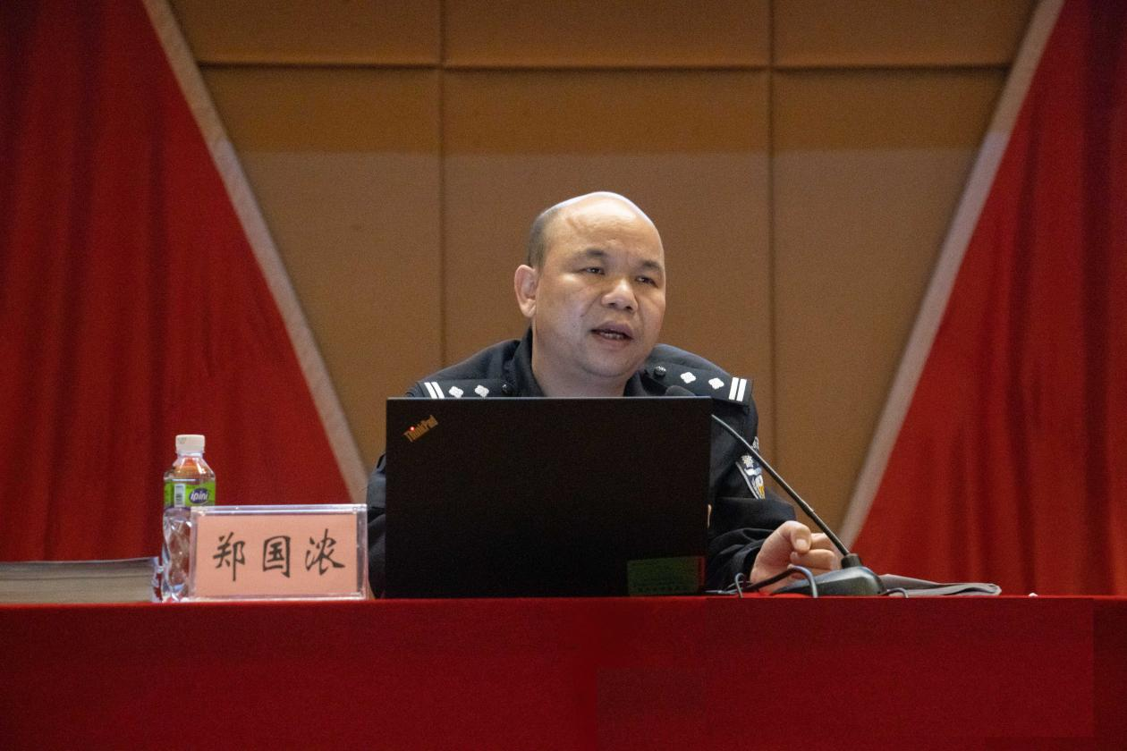 鄭國濃結合自身從警多年來的實踐經驗講述了近年來蓬江區電信網絡詐騙新型違法犯罪的形勢,讓同學們了解到為什么電信網絡詐騙案件高發,并告訴同學們一些目前打擊治理電信網絡詐騙的有效方法。他倡議同學們注冊安裝邑安小程序和國家反詐中心APP,利用技術反制提升防詐騙的能力。