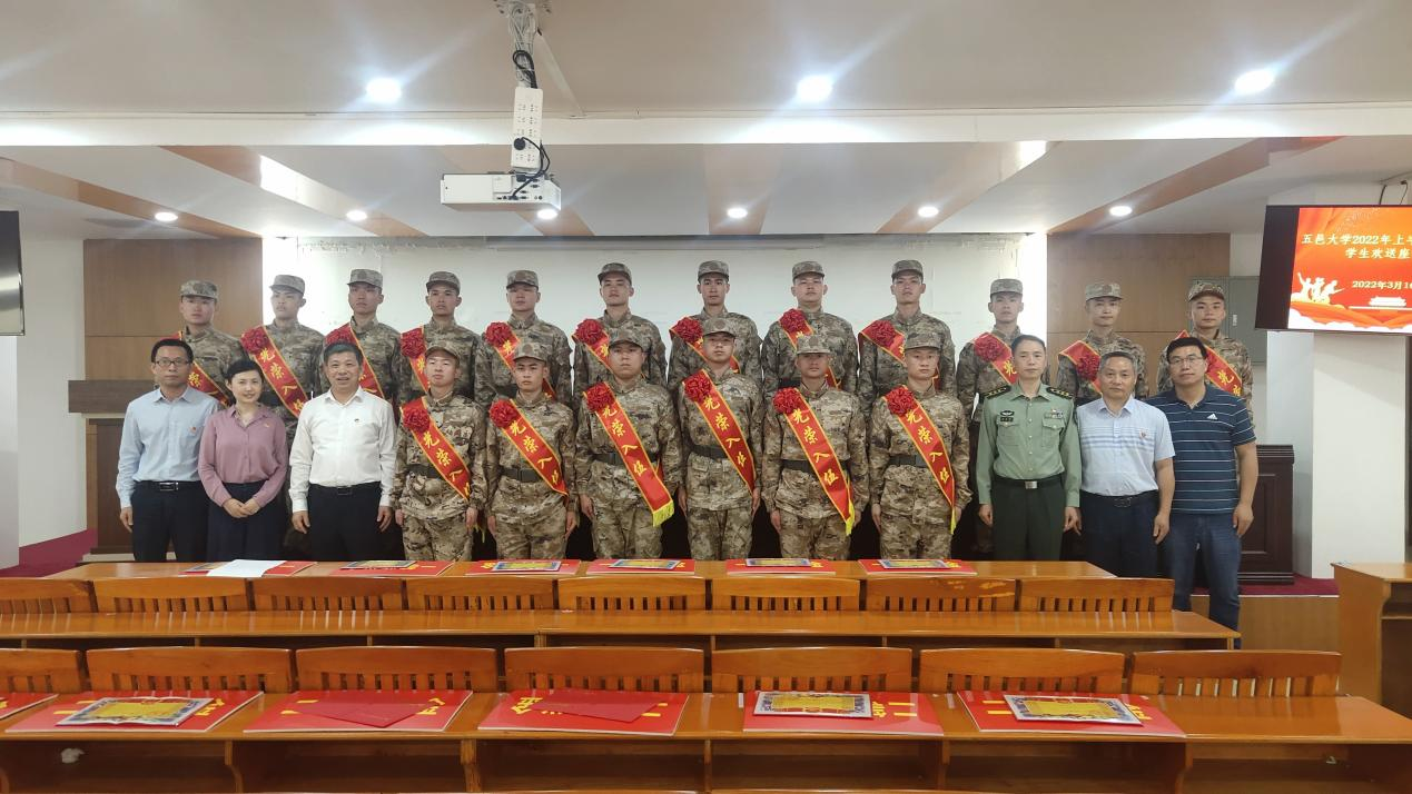 3月16日下午,五邑大學在江門市國防教育訓練基地舉行2022年上半年應征入伍學生歡送座談會,學校黨委常委副校長陳廷根、蓬江區人武部部長楊叢雄出席會議,學校征兵工作相關部門負責人、征兵工作站工作人員以及入伍學生參加會議。