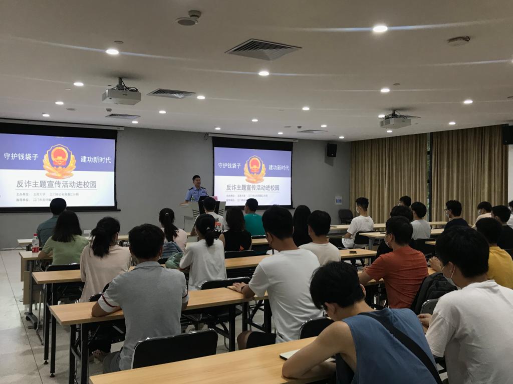 6月7日下午,我校邀請江門市公安局蓬江分局四級警長趙斌濤來校開展“守護錢袋子,建功新時代”反詐主題宣傳活動進校園專題講座,各學院(部)100余名學生代表在學生綜合服務中心209室參加了現場授課。趙斌濤從什么是電信網絡詐騙、高發類型的電信詐騙案件、如何有效防范等三個方面進行了授課,重點通過典型案例對近期高發的刷單返利類、虛假投資理財類、虛假網絡貸款類、冒充客服類、虛假征信類、網絡招嫖類、網絡游戲產品虛假交易類等高發類型的詐騙方式進行了介紹,并教育引導學生如何進行識別和防范。參加講座師生對此次授課效果反響良好。