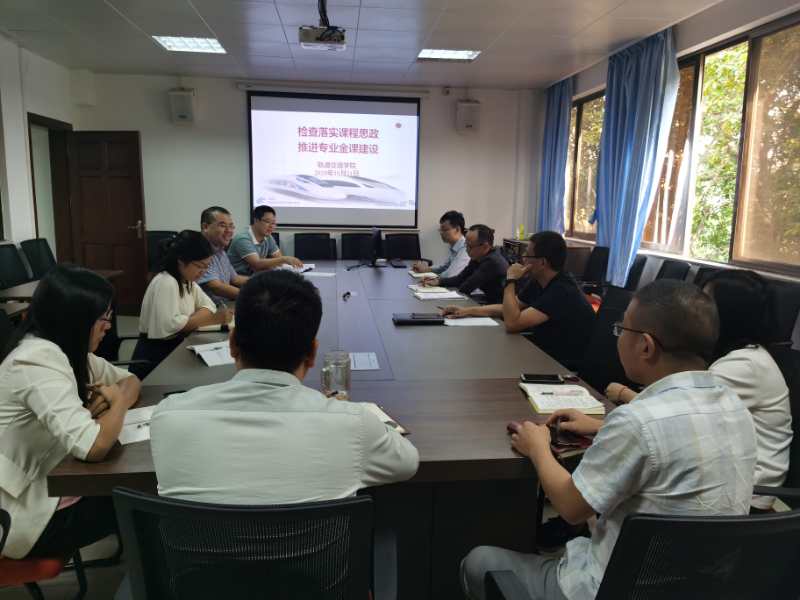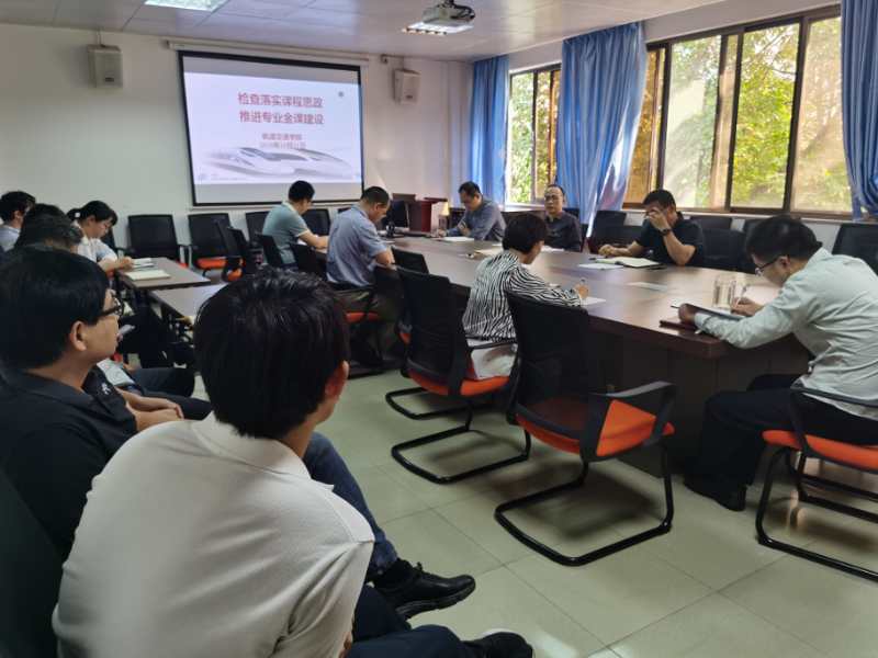 隨后,檢查學院金課示范課建設,包括軌道交通車輛工程專業導論、軌道交通車輛工程、軌道交通車輛制造工藝、軌道交通運營管理專業導論、軌道交通信號系統基礎和鐵路行車組織等六門課程,課程團隊負責人逐一匯報課程建設情況,并研討如何把課程思政進一步內化到教學設計、課程內容、課堂講授和課程考核等各方面、各環節,充分發揮每門課程、每節課堂的育人作用。