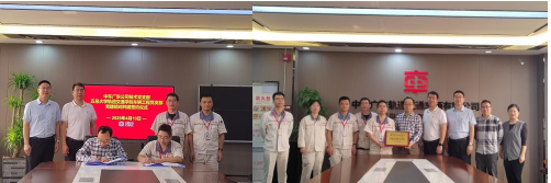 在簽約儀式上,中車廣東公司技術黨支部書記曾華南與五邑大學軌道交通學院車輛工程黨支部書記何成剛在與會人員的見證下,雙方簽署《黨建共建協議書》,明確將通過“組織共建、人才共育、資源共享”的協作模式,在黨建交流、人才培養、科學研究等方面開展深度合作。
