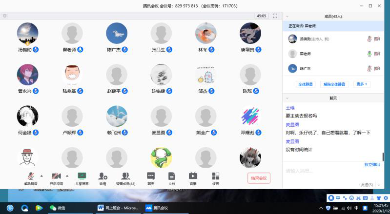 會前,學院班子就各年級班會的內容和技術保障等方面進行研究,制定了實施方案,指導各班開展好第一次線上班會課。這次班會班導師和輔導員通過網絡直播、語音通話、視頻會議等形式帶領同學們共同學習“抗疫新學期的有‘三堂’大課,你準備好了嗎?——五邑大學致全體學生的一封信新學期有‘三堂’大課”,向同學們講述了疫情防控工作涌現的感人案例,引導學生深化對馬克思主義基本理論的認識、深化對馬克思主義中國化最新成果的認識。學習強國、騰訊會議、QQ視頻、微助教、釘釘直播都成為了這場班會的主陣地。