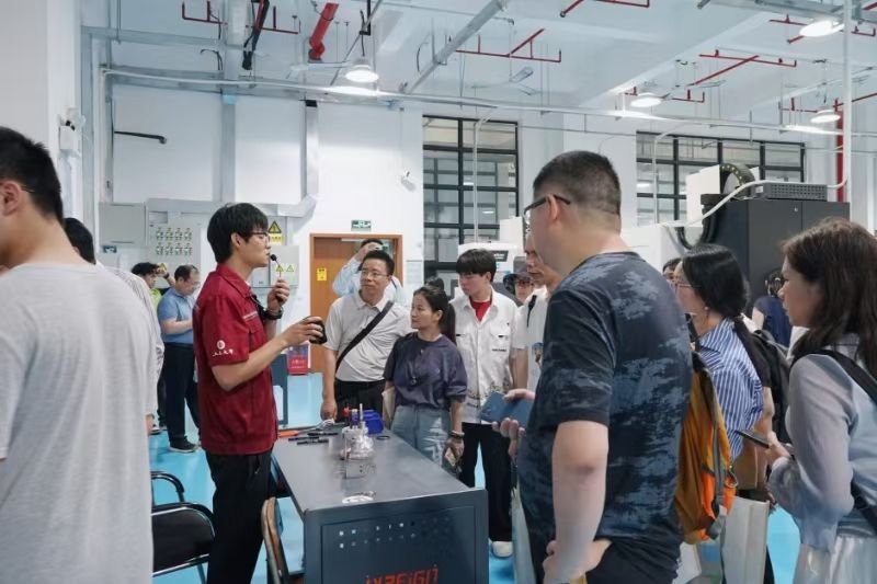 下午,家長團來到人工智能學習館、現代工業生產技術綜合訓練中心參觀。機械與自動化工程學院的梁志偉、崔福來、雷源軍老師向交流團介紹了各個場室的主要功能,展示了3D打印建筑、機械臂抓取、機器人智能拋光打磨等場景,生動詮釋了我校在促進產教融合、探索校企創新合作的新模式。