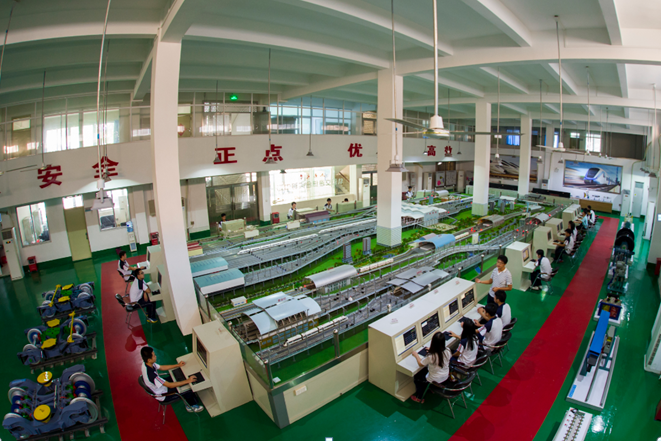 學校高度重視軌道交通專業(yè)實驗室的建設,為滿足實驗教學需要,從2011年起,通過中央財政支持地方高校發(fā)展專項資金和自籌資金,相繼投入2000多萬建設經(jīng)費,建設了一個高起點、高標準、高水平的能滿足軌道交通專業(yè)課程學習的軌道交通綜合實驗中心。中心堅持“面向行業(yè)、校企協(xié)同、整合資源、開放共享”的實驗教學理念,以大交通運輸學科為背景,以城市軌道交通為特色,以“行車控制、運行車輛、牽引供電、運輸組織”四大行業(yè)技術為主體,搭建了實虛結合、動靜結合的軌道交通“調(diào)度指揮仿真、線路沙盤模擬、移動車輛基地、機車車輛結構”四大實驗平臺,包括完全模擬真實線路運營調(diào)度的指揮仿真中心;反映高鐵、地鐵、城際鐵路線路的沙盤模擬軌道交通運營實訓系統(tǒng);具備一定長度線路、道岔系統(tǒng),真實送電的變電、接觸網(wǎng)系統(tǒng),完整的信號和通信系統(tǒng),牽引及制動功能完備的車輛系統(tǒng),微機聯(lián)鎖行車調(diào)度系統(tǒng)的可移動車輛實訓基地;擁有真實的CRH6型動車原型車、東風4型內(nèi)燃機車和韶山3型電力機車的車輛結構實驗室。同時,軌道交通專業(yè)實驗室建設得到了中國鐵路總公司、中車廣東軌道交通車輛有限公司、北京鐵道工程機電技術研究所等大力支持。
