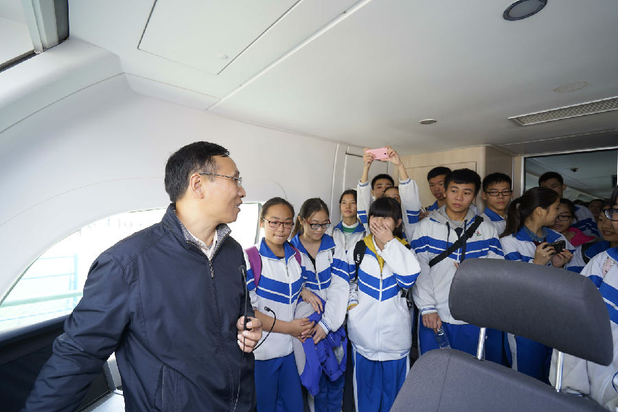 12月11日上午,以“體驗(yàn)大學(xué)生活”為主題的新會(huì)實(shí)驗(yàn)中學(xué)優(yōu)秀學(xué)生干部和教師一行六十多人來我校參觀體驗(yàn)。該活動(dòng)由招生服務(wù)中心組織,僑鄉(xiāng)文化研究中心、軌道交通學(xué)院共同參與。