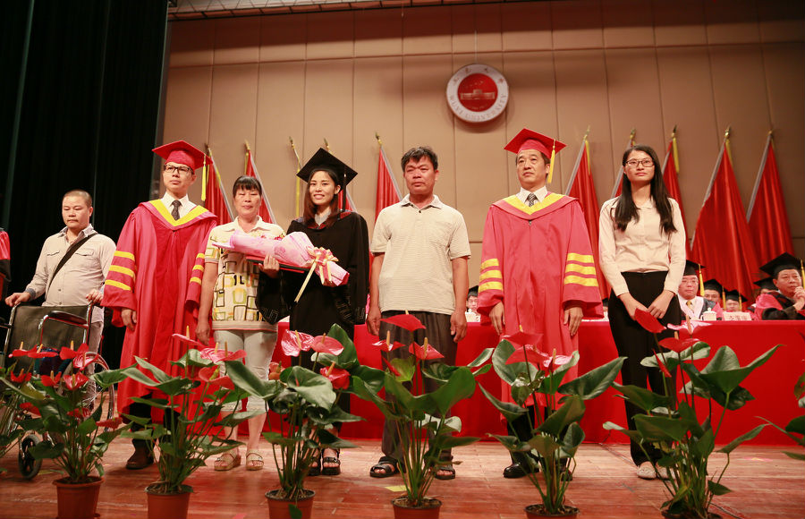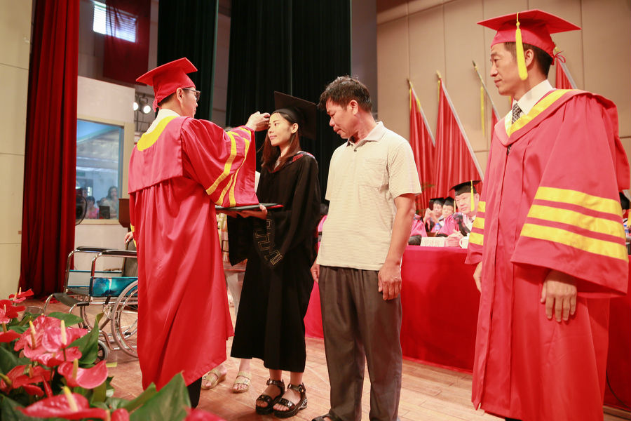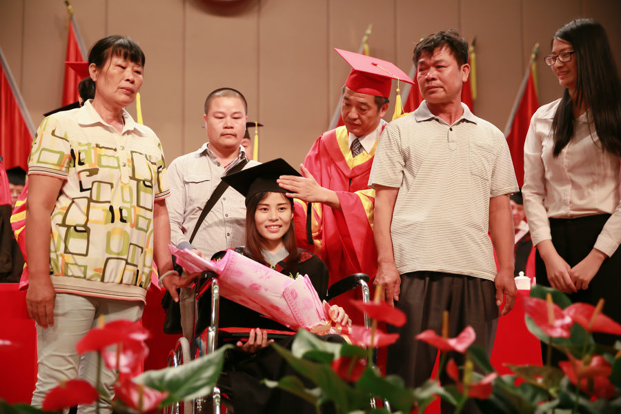 ?6月28日,學校為一名畢業生舉行了一場特殊的“個人專場”畢業典禮,一名女生從輪椅上堅強地站起來,在父母的陪同下上臺,從學校黨委書記、校長的手中接過畢業證書和學位證書,全場掌聲雷動。女生笑顏如花,不少在場的師生都流下了感動的淚水。