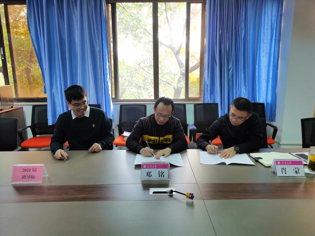 會議最后,鄧銘和肖蒙與各班班導師簽訂了《2021屆就業創業工作責任書》,并進一步明確了各自的就業創業工作任務。(文/圖 軌道交通學院)