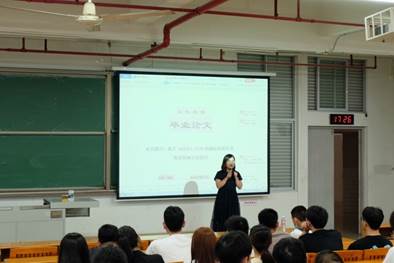 李榮發做就業再動員。認清當前就業形勢、轉變就業觀念,積極行動起來,先就業再擇業。同時解答就業簽約、入伍政策等畢業生關注的若干問題。最后強調就業安全。黃尊地開展學術誠信教育,并要求畢業生認真完成畢業設計。賈莉對畢業論文格式規范進行了詳細講解。