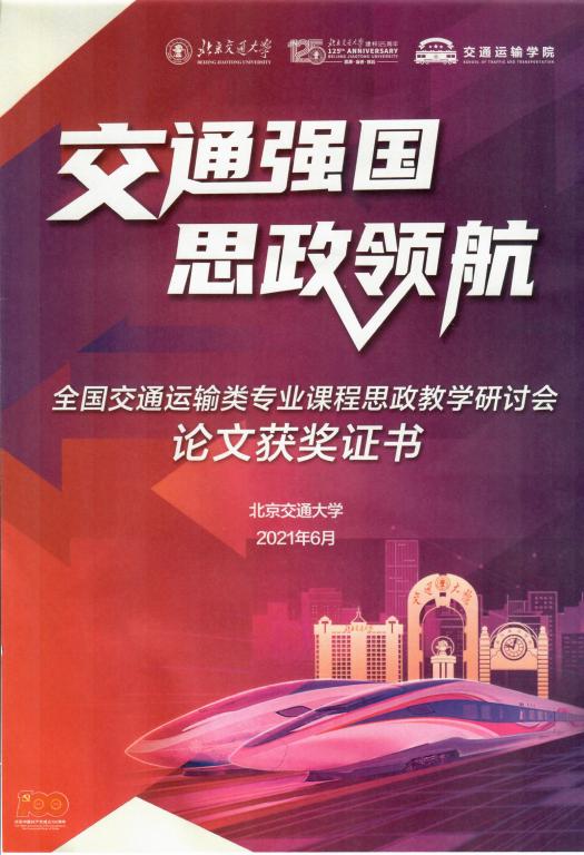 為全面落實(shí)高等教育立德樹人根本任務(wù),推動(dòng)習(xí)近平新時(shí)代中國特色社會(huì)主義思想進(jìn)課堂,深化交通運(yùn)輸類專業(yè)教學(xué)和課程思政研究,教育部高等學(xué)校交通運(yùn)輸類專業(yè)教學(xué)指導(dǎo)委員會(huì)、中國交通教育研究會(huì)于2021年6月12日在北京交通大學(xué)召開交通強(qiáng)國戰(zhàn)略下的交通運(yùn)輸類專業(yè)課程思政研討會(huì)暨人才培養(yǎng)的思政要求交流會(huì),大會(huì)征集課程思政論文及案例,并評(píng)選出一等獎(jiǎng)、二等獎(jiǎng)和優(yōu)秀獎(jiǎng)。軌道交通學(xué)院應(yīng)邀參加,提交了一篇課程思政論文和一個(gè)課程思政案例,由于廣東疫情原因未能趕赴現(xiàn)場參會(huì),但論文和案例還是得到了組委會(huì)的肯定,榮獲了優(yōu)秀獎(jiǎng)。以此為契機(jī),學(xué)院將繼續(xù)落實(shí)專業(yè)質(zhì)量提升工程,嚴(yán)抓一流課程及課程思政建設(shè),推進(jìn)課程建設(shè)上質(zhì)量,做到課程思政上水平。(文/圖 軌道交通學(xué)院)