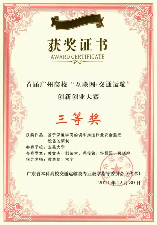 由廣東省本科高校交通運輸類專業教學指導委員會主辦,華南理工大學土木與交通學院承辦的首屆廣東高校“互聯網+交通運輸”創新創業大賽于2021年12月完成決賽,學院黃尊地、常寧老師指導的作品榮獲三等獎。學院希望以此為契機,不斷推進創新創業教育,爭取在后續的全國大學生交通運輸科技大賽和“互聯網+”大學生創新創業大賽等賽事中取得好成績。(圖/文 軌道交通學院)