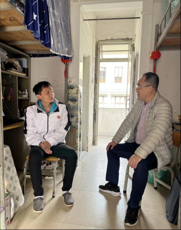 疫情防控常態下其他不能到達的家庭,通過電話、微信等線上方式進行“云端走訪”落實慰問,以及在學生離校前通過走訪宿舍送上新春祝福與關心問候。走訪中進一步了解了學生的發展情況和需求,為今后的辦實事、解難題工作打下堅實基礎。學院黨總支書記鄧銘、副書記李榮發寒假期間到宿舍走訪了2名留校學生,了解學生留校期間的學習生活身心等各方面的情況,結合學生的年級專業有針對性地提出發展建議,讓留校學生在寒假期間能做好規劃,在持續的溝通交流中為學生解決實際問題。
