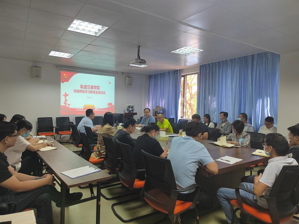 10月11日下午,軌道交通學院在恩平樓三樓會議室召開師德師風學習教育及培訓會,全體教職工參加會議。會議由黨委書記鄧銘主持。