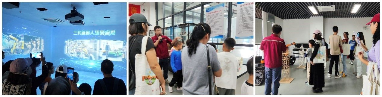 下午,親子團來到現代工業生產技術綜合訓練中心參觀。機械與自動化工程學院的梁志偉、崔福來、雷源軍老師向交流團介紹了各個場室的主要功能,展示了3D打印建筑、機械臂抓取、機器人智能拋光打磨等場景,生動詮釋了我校在促進產教融合、探索校企創新合作的新模式。