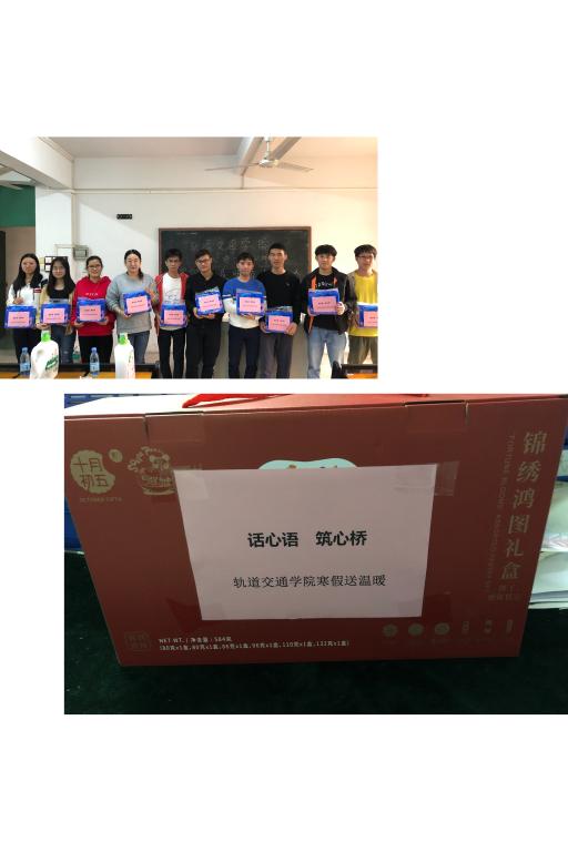 一是聚焦重點資助學生,發放寒冬溫暖生活用品。學院于1月9日召開“話心語·筑心橋”寒假送溫暖座談會,發放洗衣液和紙巾等生活用品,實現軌道交通學院建檔立卡同學全覆蓋。