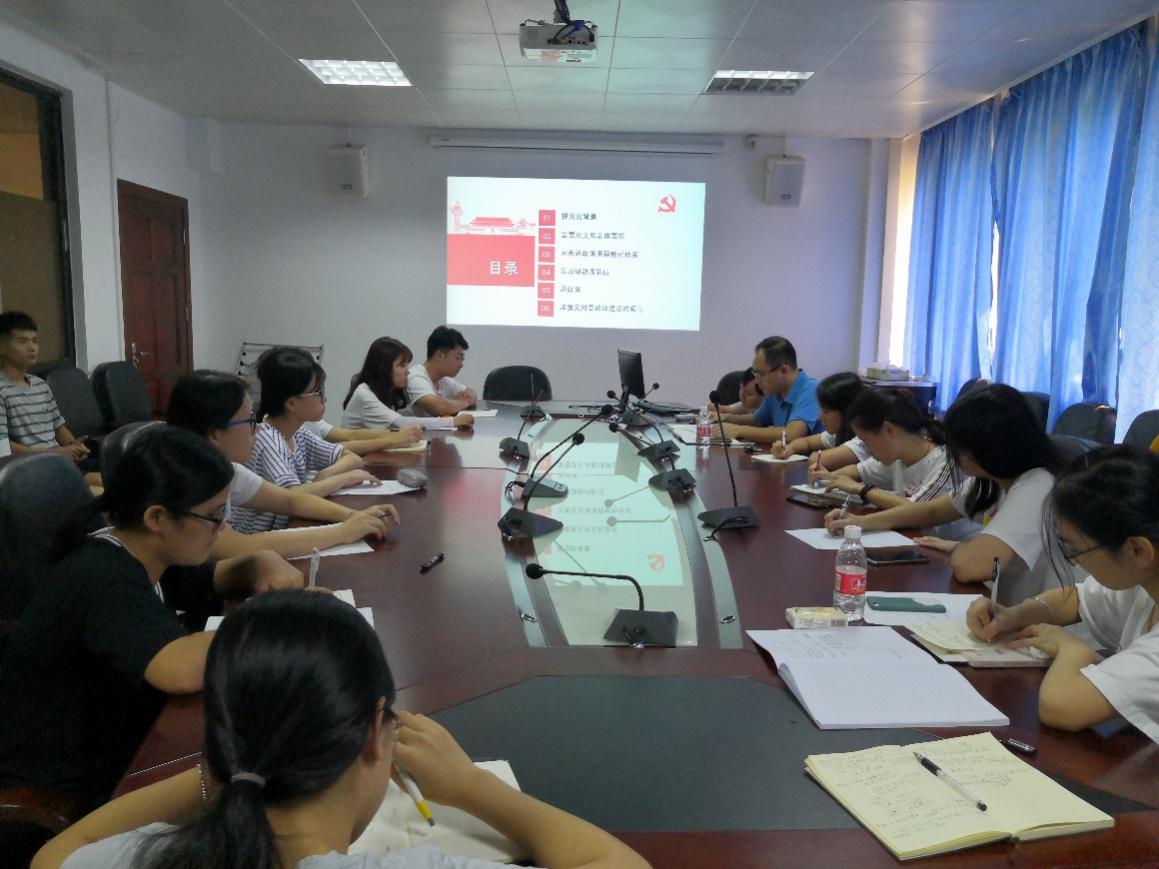 2019年9月11日中午,軌道交通學院學生黨支部在恩平樓三樓開展《關于深化新時代學校思想理論課改革創新的若干意見》主題黨課學習活動。黨課由學生黨支部書記李榮發主講。