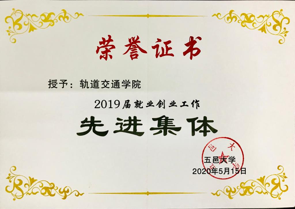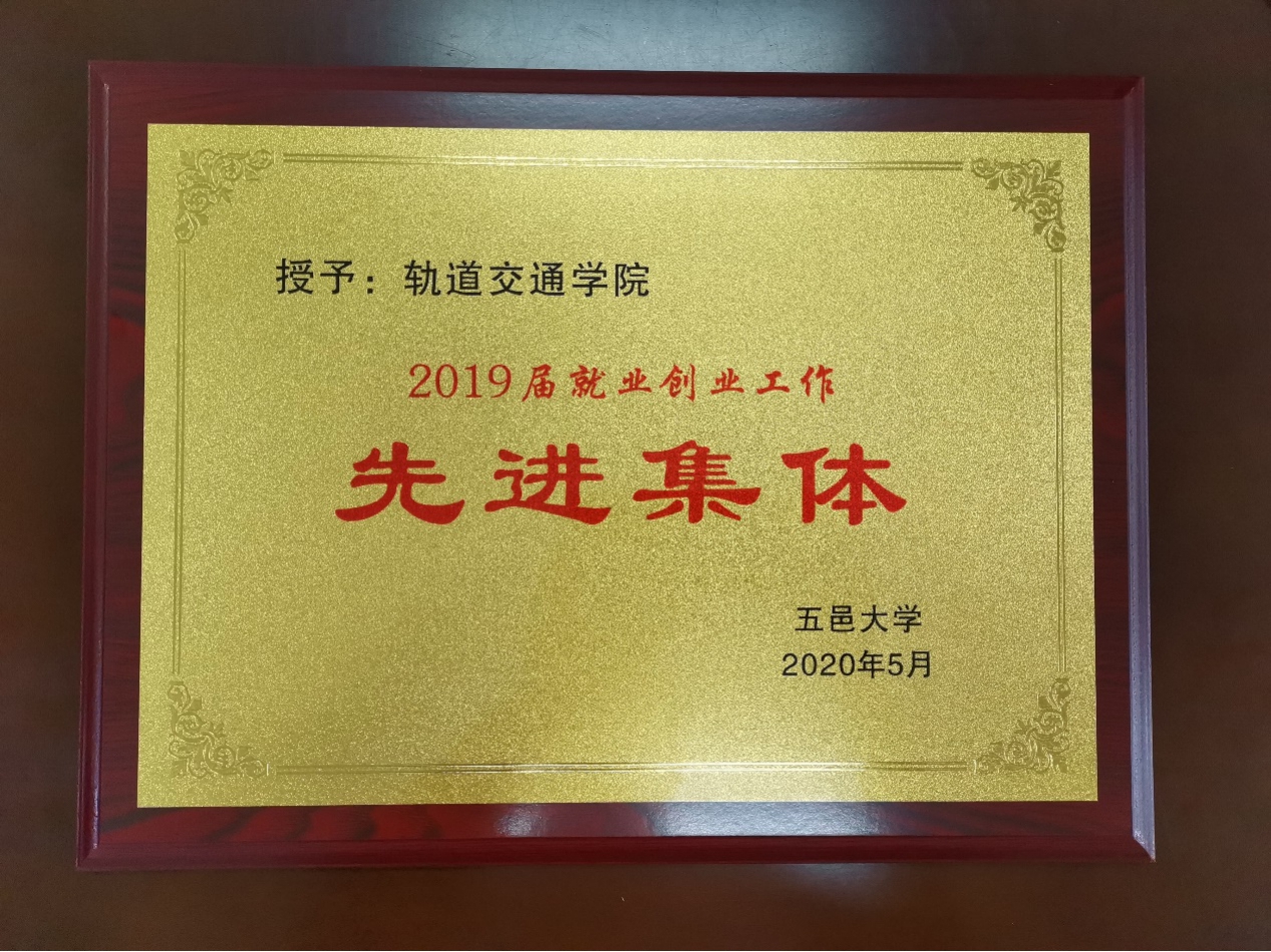 學院2019屆畢業生就業創業工作在全院教職員工及全體2019屆畢業生的共同努力下,較好地完成了《2019年五邑大學畢業生就業創業工作目標責任書》以及《軌道交通學院2019屆畢業生就業創業工作目標責任書》的任務要求,就業創業工作得到學校的認可,獲評“2019屆就業創業工作先進集體”。