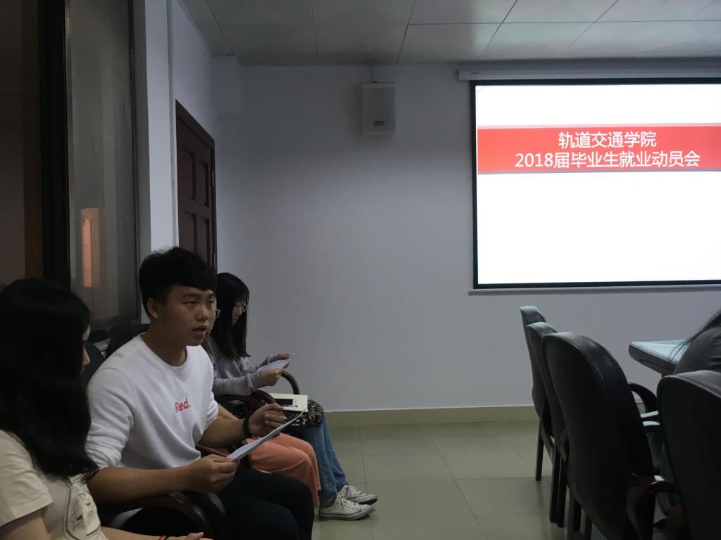 為了進(jìn)一步強(qiáng)化就業(yè)工作,4月19日,軌道交通學(xué)院在學(xué)院會(huì)議室舉行2018屆畢業(yè)生就業(yè)沖刺動(dòng)員會(huì),學(xué)院班子成員、畢業(yè)班班導(dǎo)師、輔導(dǎo)員老師、學(xué)生代表等參加本次會(huì)議。