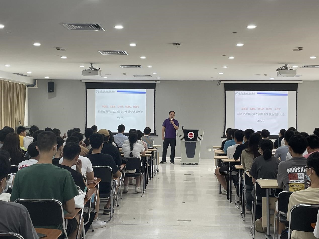 9月19日上午,軌道交通學院召開2023屆畢業生就業動員大會。學院黨委書記鄧銘、副書記李榮發、教學副院長黃尊地、畢業班班導師和輔導員及全體2023屆畢業生參加了本次動員大會。