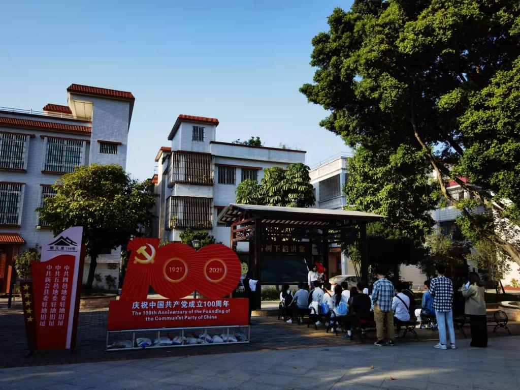 來到江海區滘頭順天里144號紅色教育基地,在講解員的引導下,通過觀展板、聽解說等多種形式詳細了解革命先輩的英雄事跡。參觀了中共四邑地委、中共五邑地委、中共新會縣委駐地舊址,一幅幅圖片、一個個場景,一篇篇見證歷史的文獻,原汁原味還原革命故事,向大家訴說著卓越的“紅管家”葉季壯等先輩為實現初心和使命前赴后繼、英勇奮斗的光輝歷程,深切體會了革命先輩投身革命、奮勇戰斗、不畏犧牲的大無畏精神。隨后,開展“榕樹下的講堂”,學生第二黨支部書記戴瑞芳、輔導員鐘楚瑩老師給大家講述中共四邑地委書記葉季壯等革命先輩領導當地工農群眾革命斗爭的光輝歷史。