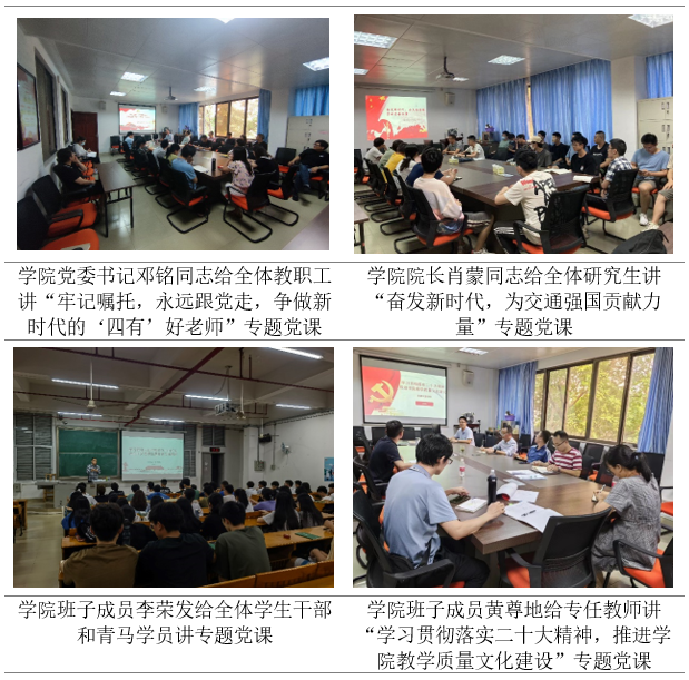 根據(jù)《五邑大學(xué)軌道交通學(xué)院關(guān)于深入開展學(xué)習(xí)貫徹習(xí)近平新時(shí)代中國(guó)特色社會(huì)主義思想主題教育的實(shí)施方案》的要求,黨員領(lǐng)導(dǎo)干部抓好個(gè)人自學(xué),發(fā)揮好領(lǐng)學(xué)帶學(xué)促學(xué)作用。同時(shí),在5-6月期間,學(xué)院班子結(jié)合學(xué)習(xí)體會(huì)和實(shí)際工作講好專題黨課,主要負(fù)責(zé)同志帶頭講,其他班子成員到分管、聯(lián)系單位或所在黨支部開展了系列黨課,取得了良好效果。(文/圖 軌道交通學(xué)院)