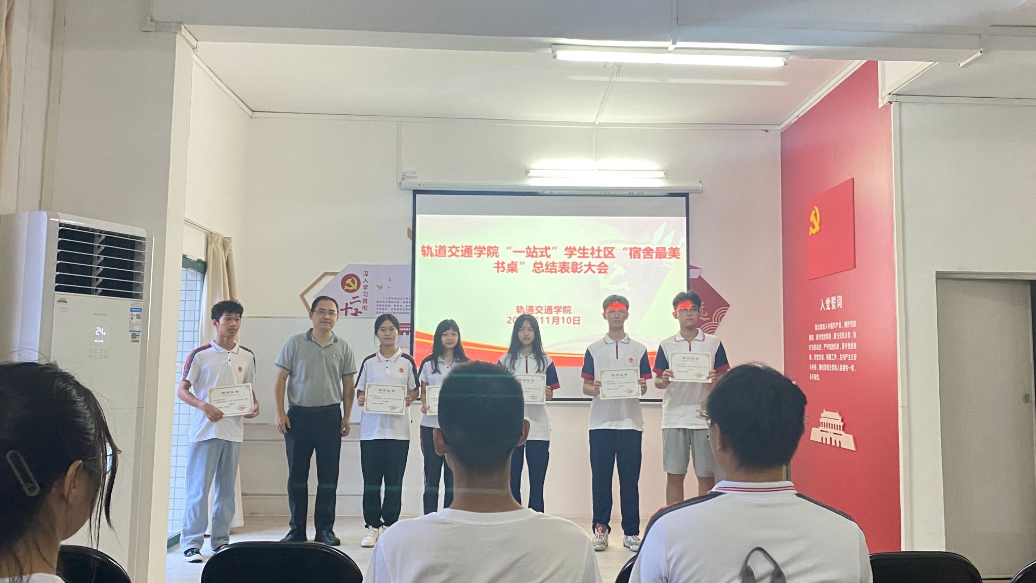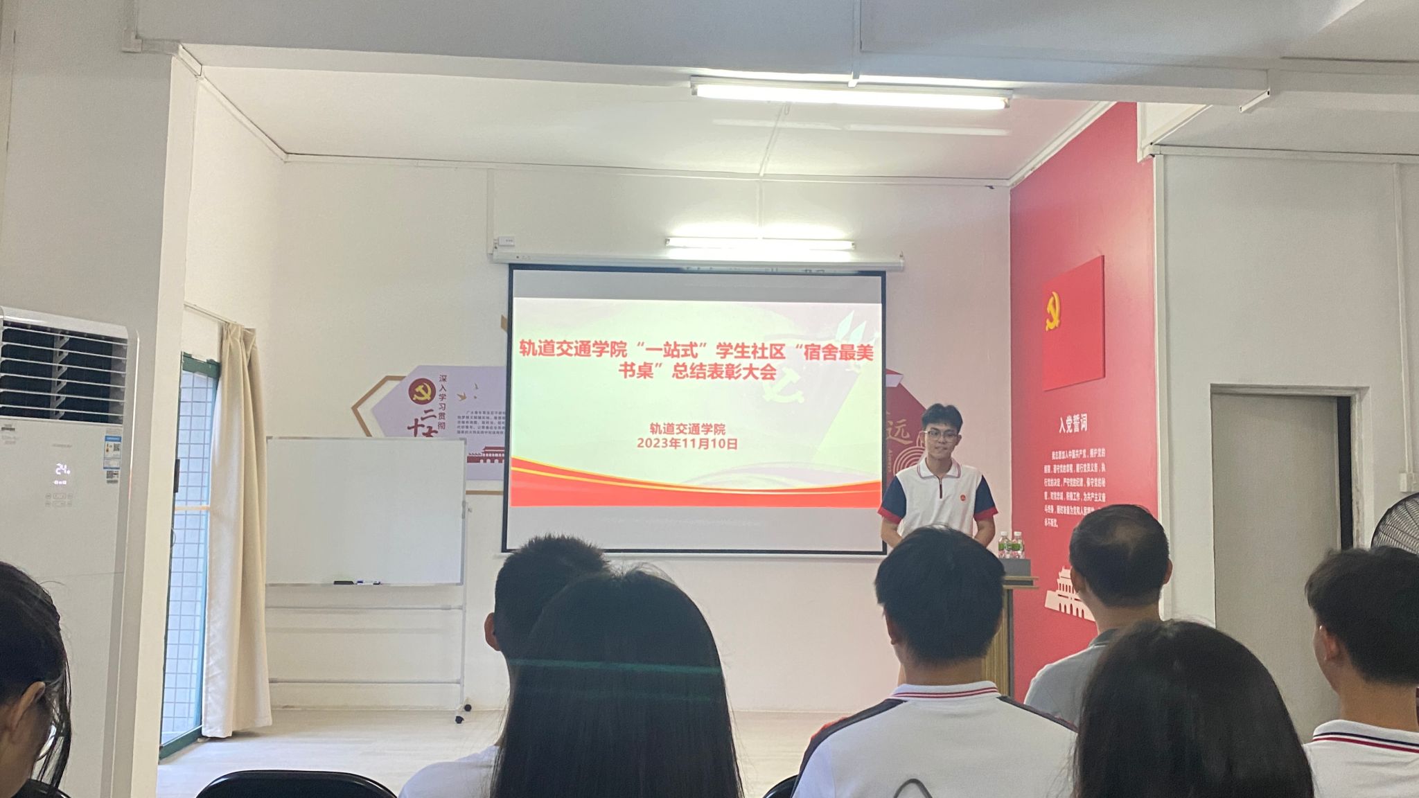 為淬煉優(yōu)良校風(fēng)學(xué)風(fēng),落實(shí)學(xué)校關(guān)于“一站式”學(xué)生社區(qū)綜合管理模式建設(shè)的相關(guān)要求,將高校學(xué)生社區(qū)打造成為學(xué)生黨建前沿陣地、“三全育人”實(shí)踐園地、平安校園樣板高地,11月10日下午,軌道交通學(xué)院在岑才生樓“一站式”學(xué)生社區(qū)多功能活動(dòng)室舉辦“一站式”學(xué)生社區(qū)“宿舍最美書桌”創(chuàng)意大賽總結(jié)表彰大會(huì)。軌道交通學(xué)院黨委副書記李榮發(fā)、學(xué)院輔導(dǎo)員、獲獎(jiǎng)學(xué)生及學(xué)生代表參與了此次會(huì)議。