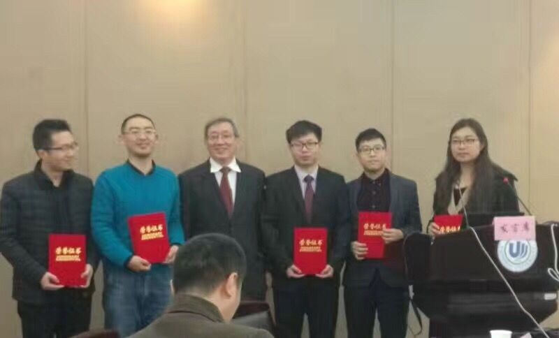 劉哲(右三)、翁凱(右二)獲得榮譽證書