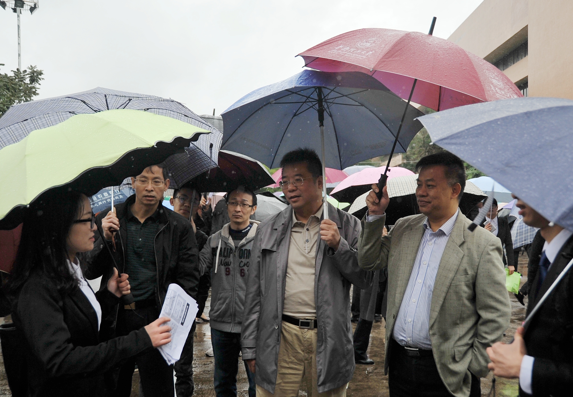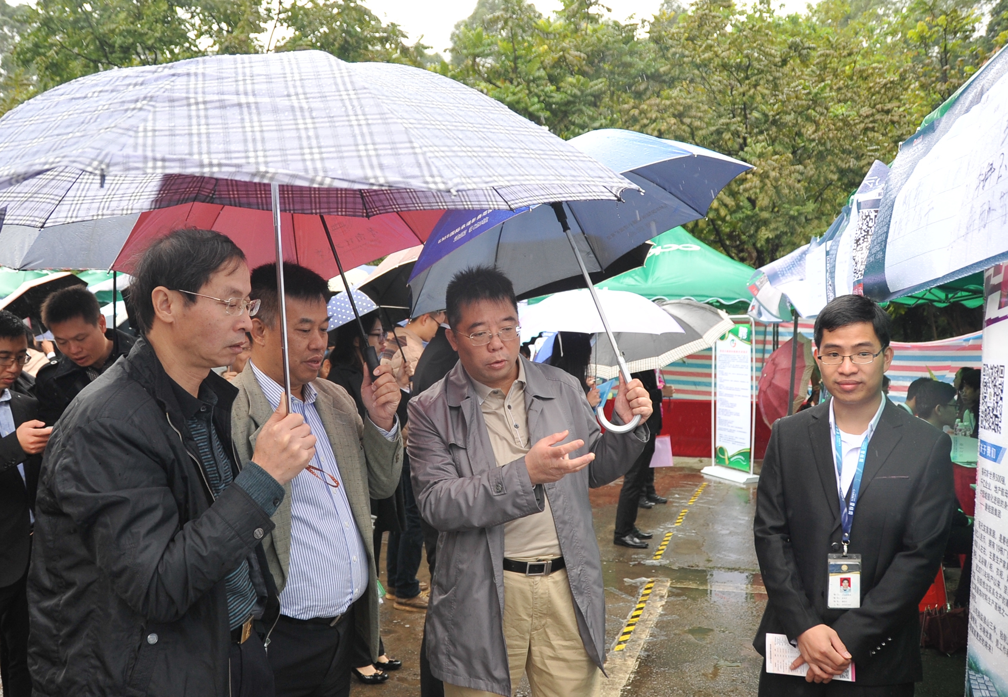 省教育廳高等學校畢業生就業指導中心副調研員謝向軍,華南理工大學就業指導中心主任馮小寧,華南理工大學廣州學院學生就業指導中心副主任岑有文在學校黨委副書記李靄康陪同下蒞臨會場指導。