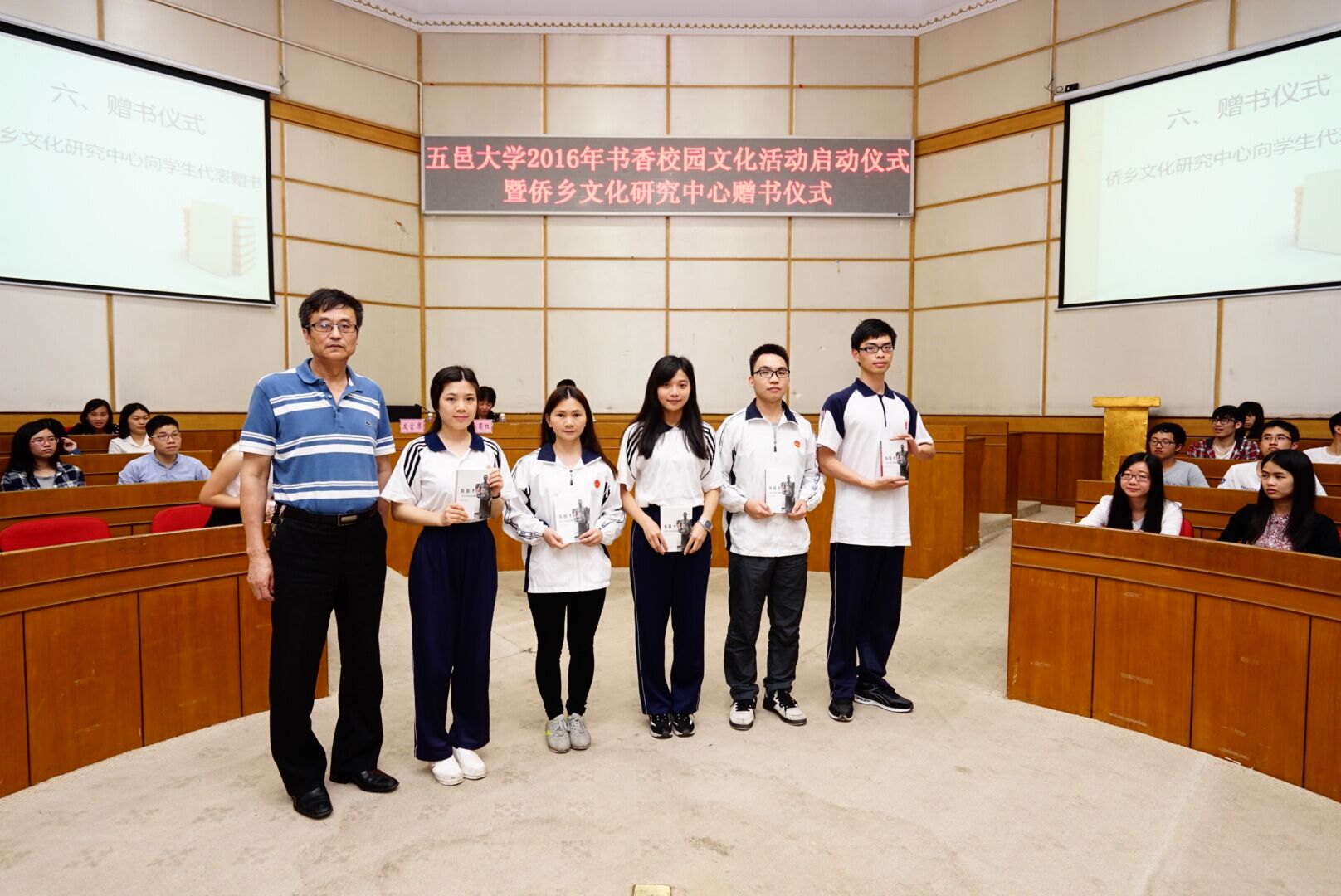 4月22日下午,學校在十友樓舉行2016年“書香校園”文化活動啟動儀式暨僑鄉文化研究中心贈書儀式。僑鄉文化研究中心張國雄教授、黨委宣傳部常務副部長戴永潔、學生處處長許皓、校團委副書記曾青云、圖書館副館長吳蜀紅,各學院黨總支副書記、輔導員及學生代表參加了活動。