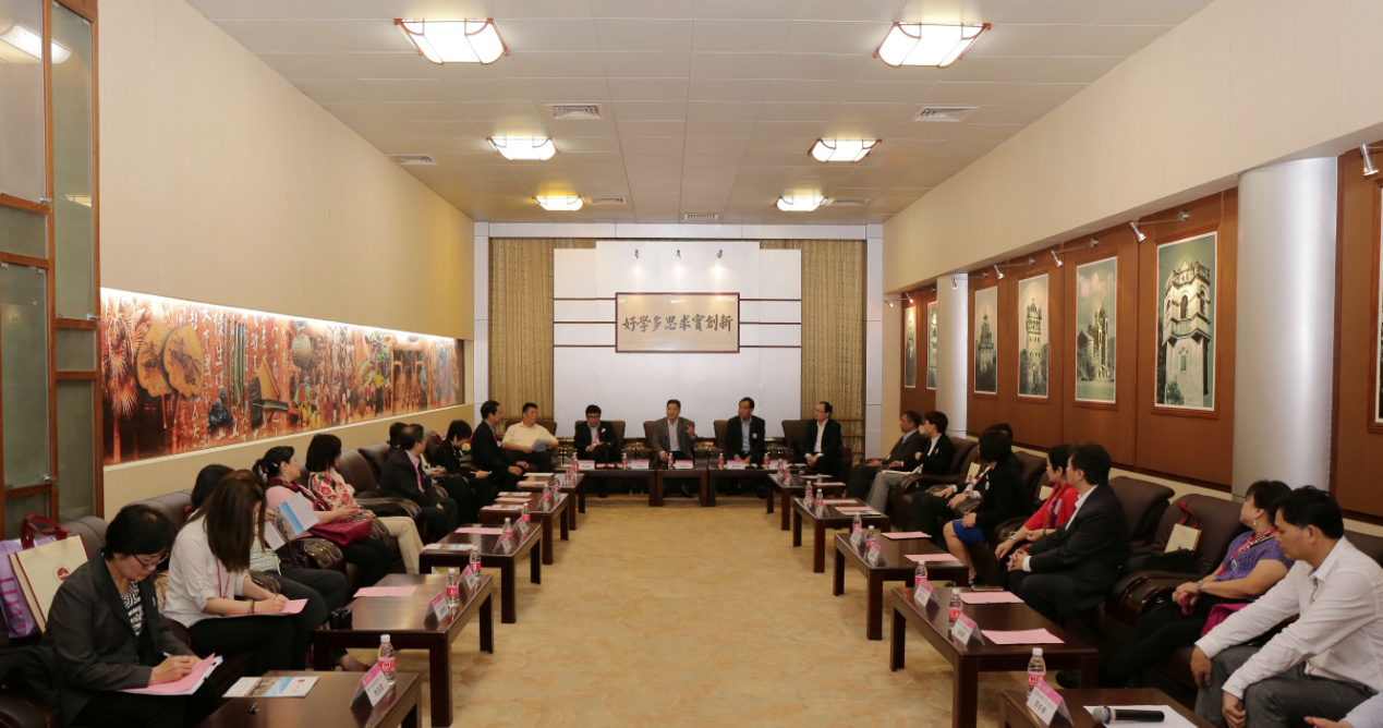 張運華校長、吳榮治主席分別向訪問團介紹了我校建校歷史、發(fā)展現(xiàn)狀等基本情況,并介紹了我校僑鄉(xiāng)文化研究特色和廣大僑胞合力共建大學的歷史功績,希望代表團成員多關(guān)注五邑大學的建設(shè)發(fā)展,多來學校交流指導工作。(文/ 港澳臺辦 圖/宣傳部)