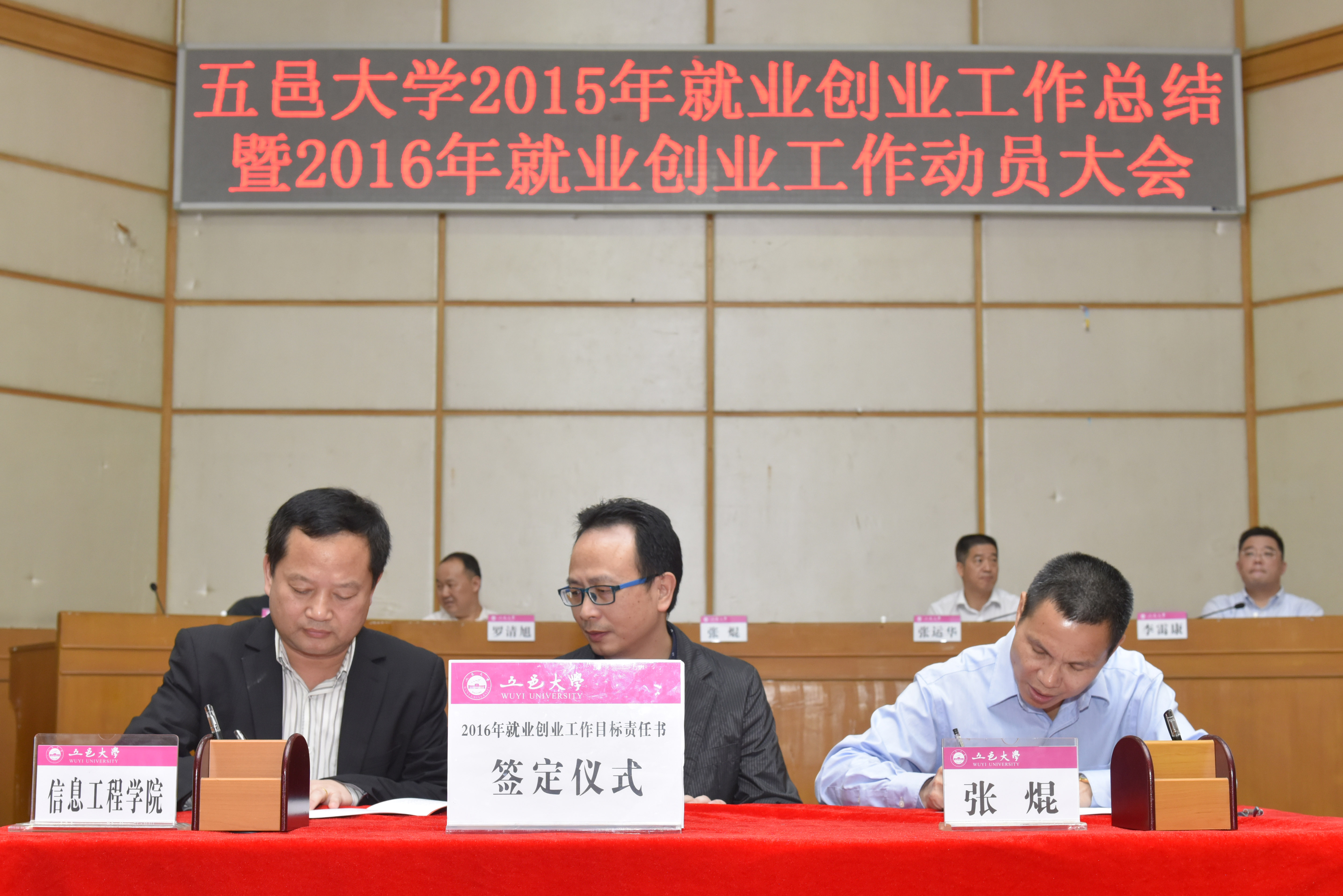 會上,張焜書記與各學院簽訂了2016年畢業生就業創業工作目標責任書。(文/就業指導與服務中心 圖/宣傳部)
