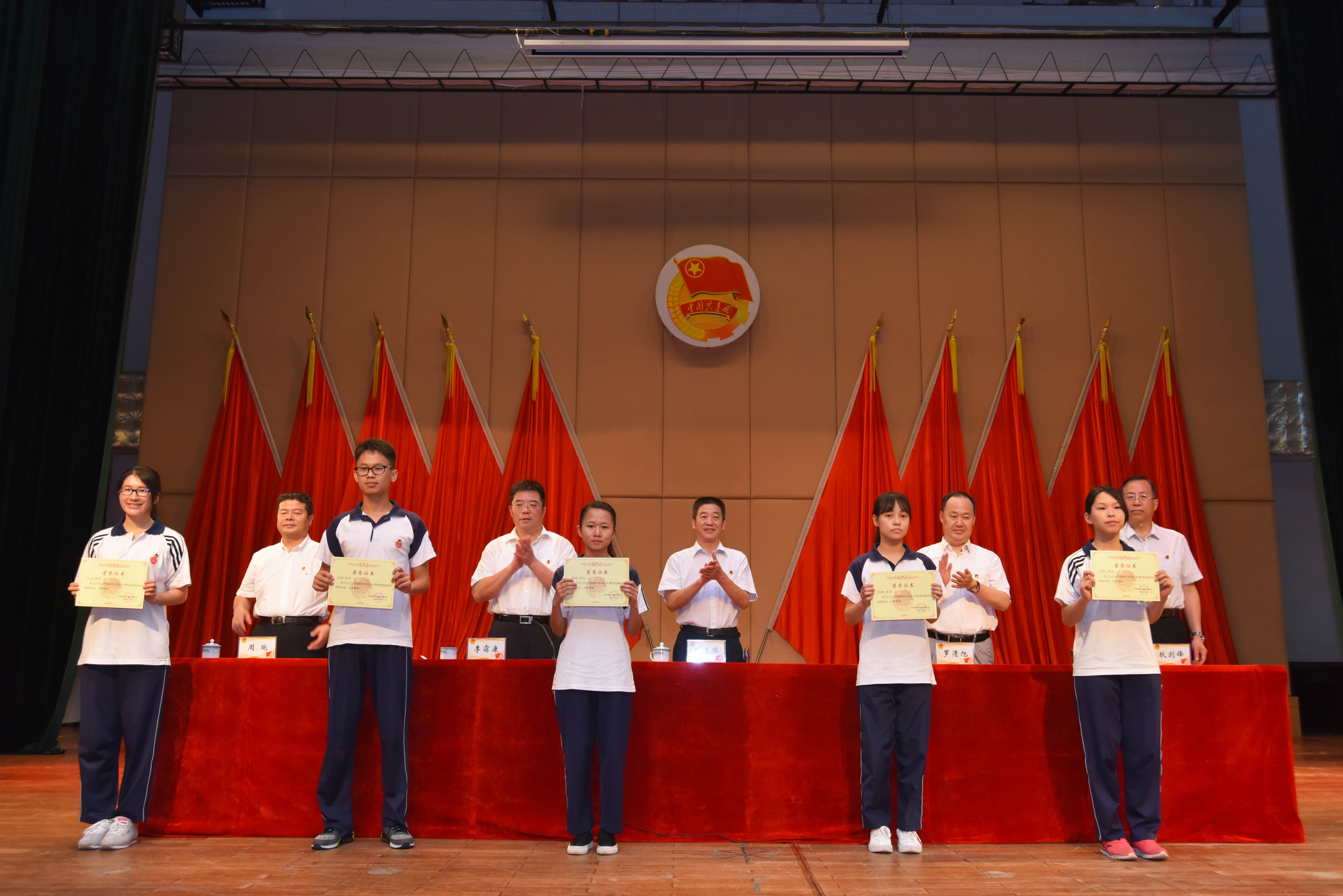 校團委副書記曾青云宣讀《共青團五邑大學委員會關于表彰2015—2016年度工作優秀集體和先進個人的決定》,授予信息工程學院、文學院、數學與計算科學學院團總支“五四紅旗團總支”稱號,授予28個單位“五四紅旗團支部”稱號;另有24人被評為“優秀共青團干部標兵”,25人被評為“優秀共青團員標兵”,105人被評為“優秀共青團干部”,721人被評為“優秀共青團員”。校領導為獲獎集體和個人代表頒獎。
