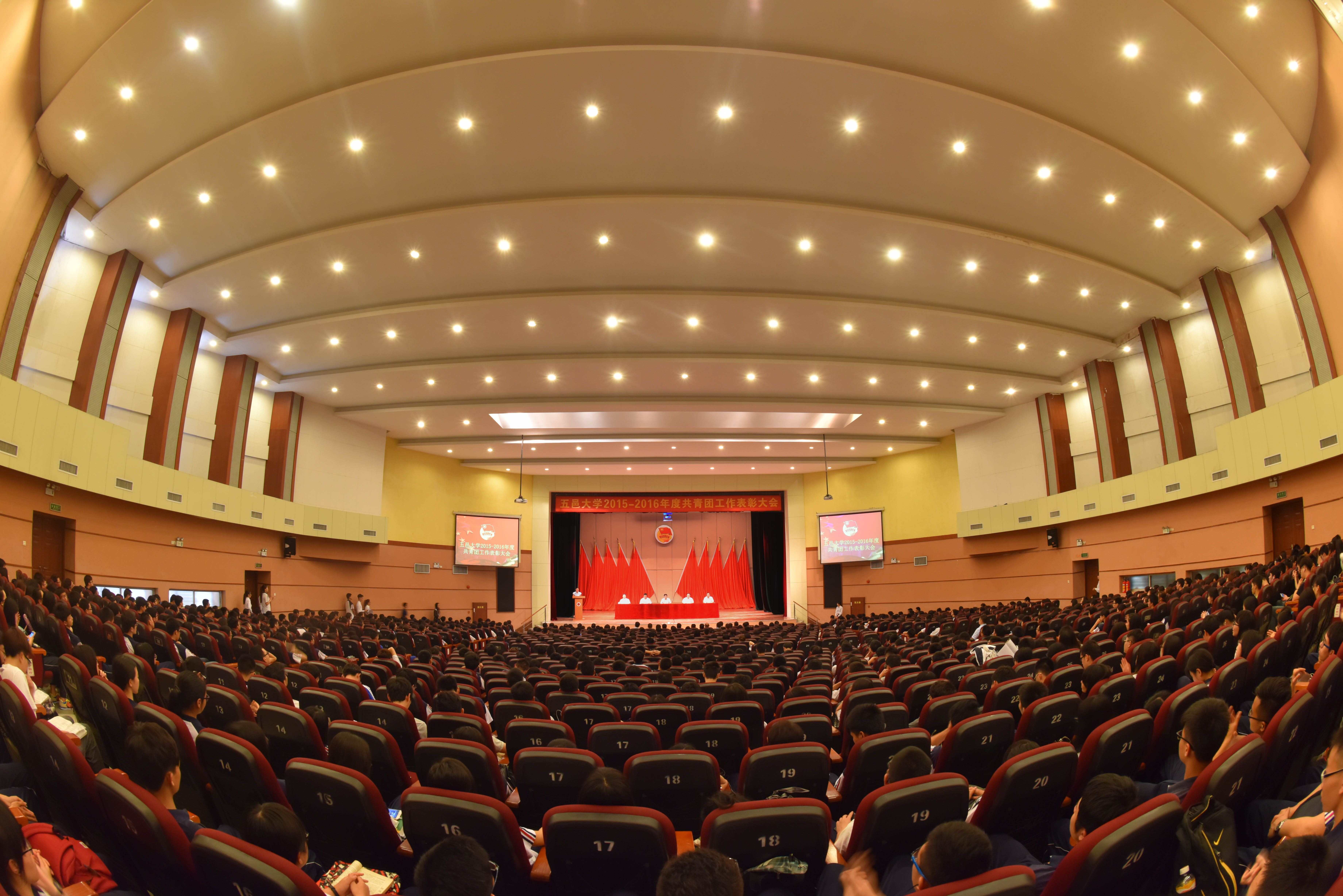 5月4日下午,五邑大學2015—2016年度共青團工作表彰大會在呂志和禮堂舉行。校長張運華等校領導,以及各職能部門負責人、各學院黨總支書記、副書記、團總支書記、學生代表等出席了大會。