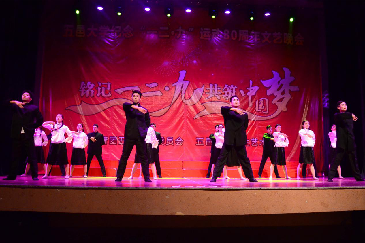 本次晚會以“銘記一二·九,共筑中國夢”為主題,分為兩個篇章。上篇“銘記一二·九”用舞蹈《青年學子》、舞臺劇《歷史的眼淚》、合唱《深海》、朗誦《救我中華,還我河山》等藝術形式謳歌了當年愛國青年的英雄豪邁。下篇“共筑中國夢”以舞蹈《歡慶豪情》、朗誦《青春的誓言》、舞臺劇《菁菁校園》、合唱《走向復興》等節目展現在中國共產黨的領導下中華民族英勇奮斗、破浪前行,巍然屹立在世界東方的壯舉。(文/圖 團委)