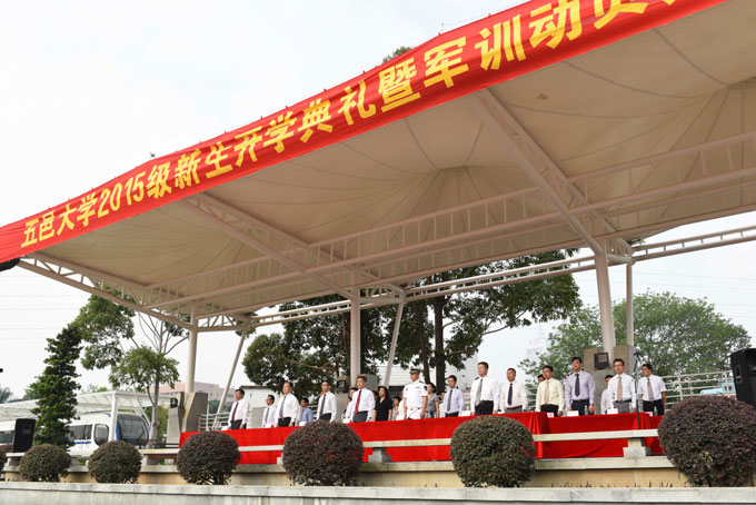 9月15日上午,學校在北區田徑運動場舉行2015級新生開學典禮暨軍訓動員大會。校黨委書記張焜、校長張運華、副書記羅清旭、副校長譚海鷗、周飚,中國人民解放軍92481部隊副部隊長謝軍,學校相關黨政部門及各學院的負責同志出席了典禮,張焜書記主持典禮。