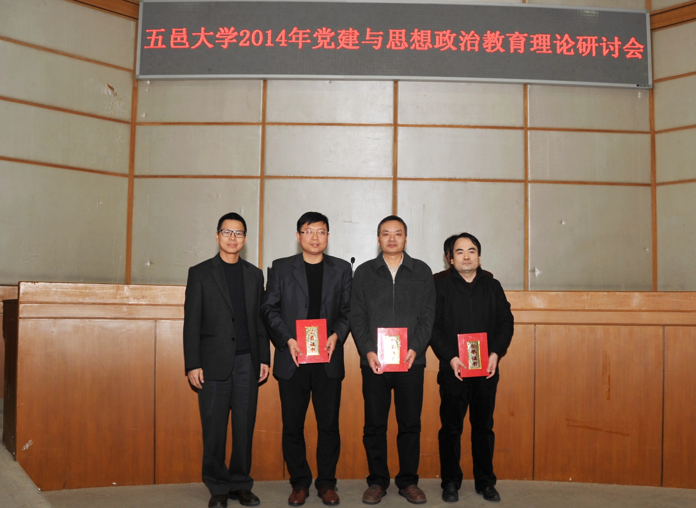會上,張運華宣讀了校黨委《關于表彰黨建與思想政治教育理論研討會優秀組織和優秀論文獎的決定》。本次研討會共收到論文71 篇,經過專家認真評審得出一等獎3篇、二等獎5 篇、三等獎12篇,優秀組織獎5 個。與會校領導對獲獎的個人和單位頒發了榮譽證書。此外,還對2014年校園十大讀書標兵等多項校園文化賽事的獲獎單位和學生進行了頒獎。(文/圖宣傳部)