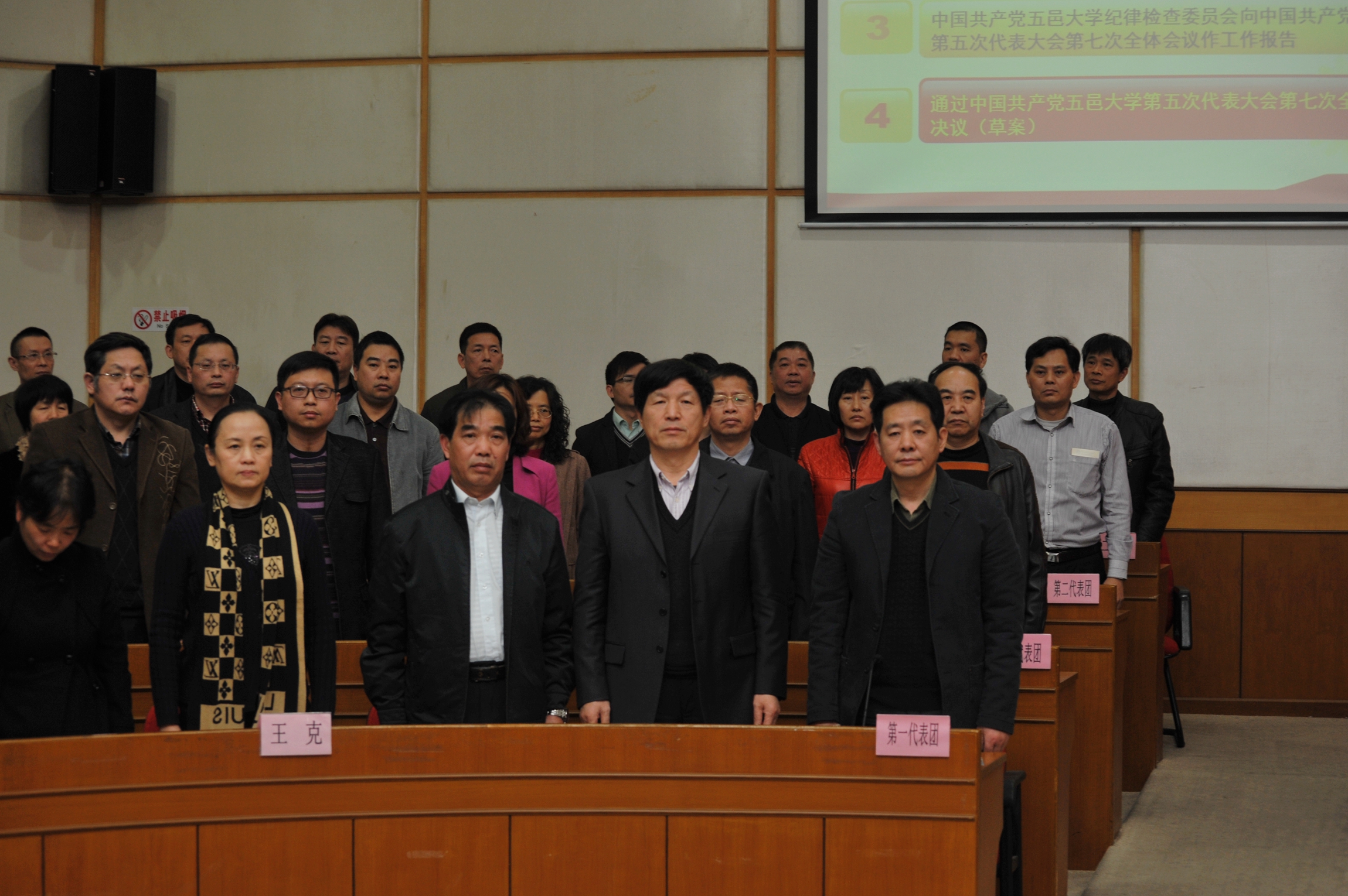 中國共產黨五邑大學第五次代表大會第七次全體會議聽取了黨委書記張焜同志作的《以“三嚴三實”為準則,全面加強黨的建設,保障和促進學校中心工作開展》的黨委工作報告;聽取了黨委副書記、紀委書記羅清旭同志作的《加強教育和監督,持續推進學校反腐倡廉建設工作》的紀委工作報告;提交了《關于2014年度黨費收繳、使用和管理情況的報告》的書面材料。