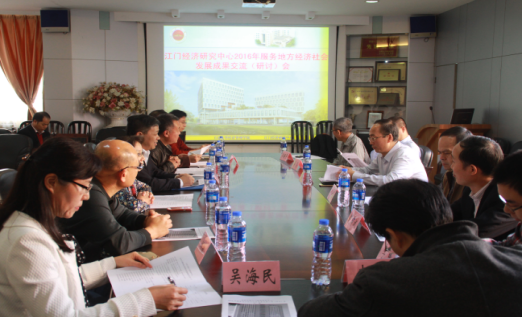 為總結江門經濟研究中心在科研、人才培養、文化傳承以及服務地方經濟社會發展等領域取得的成績,探討新常態下“政產學研”合作的新模式,探究更好服務地方經濟社會發展的新路徑,2016年12月23日在五邑大學經濟管理學院召開了主題為“探討政產學研新模式,服務地方經濟新發展”成果交流研討會。