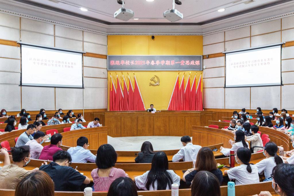4月8日下午,校黨委書記張焜為經(jīng)濟(jì)管理學(xué)院2020級(jí)金融學(xué)、旅游管理等專業(yè)學(xué)生講授了新學(xué)期第一堂思政課“銘記光輝歷史 賡續(xù)精神血脈 奮進(jìn)百年新征程”。學(xué)校相關(guān)部門負(fù)責(zé)人、各學(xué)院黨總支副書記、馬克思主義學(xué)院全體教師參加了聽課學(xué)習(xí)。