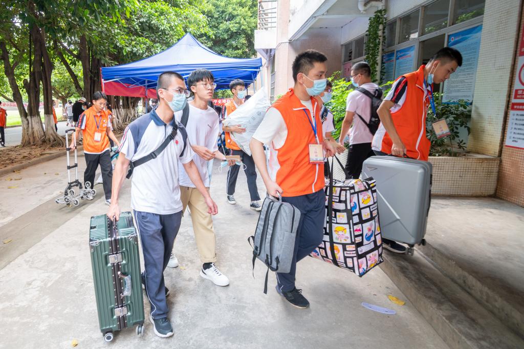 考慮到家長不能陪同進入校園,新生入校后,學校專門安排了接駁車將學生從校門口送達宿舍樓下,讓遠道而來的同學們不必為搬運行李而煩惱。另外特別安排了“一對一”新生接待服務,新生從在車站下車開始,到測溫掃碼進校、辦理報到手續(xù)以及入住宿舍,全程都有“一對一”志愿者提供周到服務,做到全程無憂。