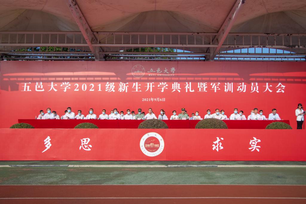9月6日上午,五邑大學2021級新生開學典禮暨軍訓動員大會在北區田徑運動場舉行。江門市委常委、江門軍分區司令員程大欣大校,校黨委書記張焜、校長張運華等校領導,校軍訓工作領導小組全體成員、各學院(部)主要負責同志、副書記、輔導員及2021級全體新生出席了本次典禮。典禮由校黨委書記張焜主持。