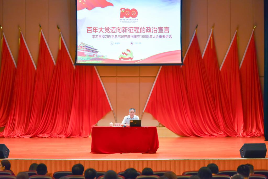 9月16日,校長張運華以“百年大黨邁向新征程的政治宣言”為主題,為2021級新生講授了新學期第一堂思政課。學校相關部門負責人、各學院黨總支副書記、馬克思主義學院全體教師參加了聽課學習。