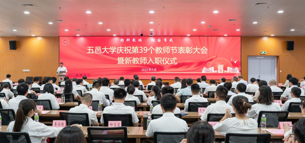 9月5日,在第39個教師節即將到來之際,學校舉行慶祝第39個教師節表彰大會暨新教師入職儀式。校黨委書記欒天罡、校長張運華、副校長周飚,各學院(部)黨委(黨總支)書記、新入職教師、30年教齡教師、省級以上教學比賽獲獎教師和相關職能部門負責同志近150人參加了本次活動。