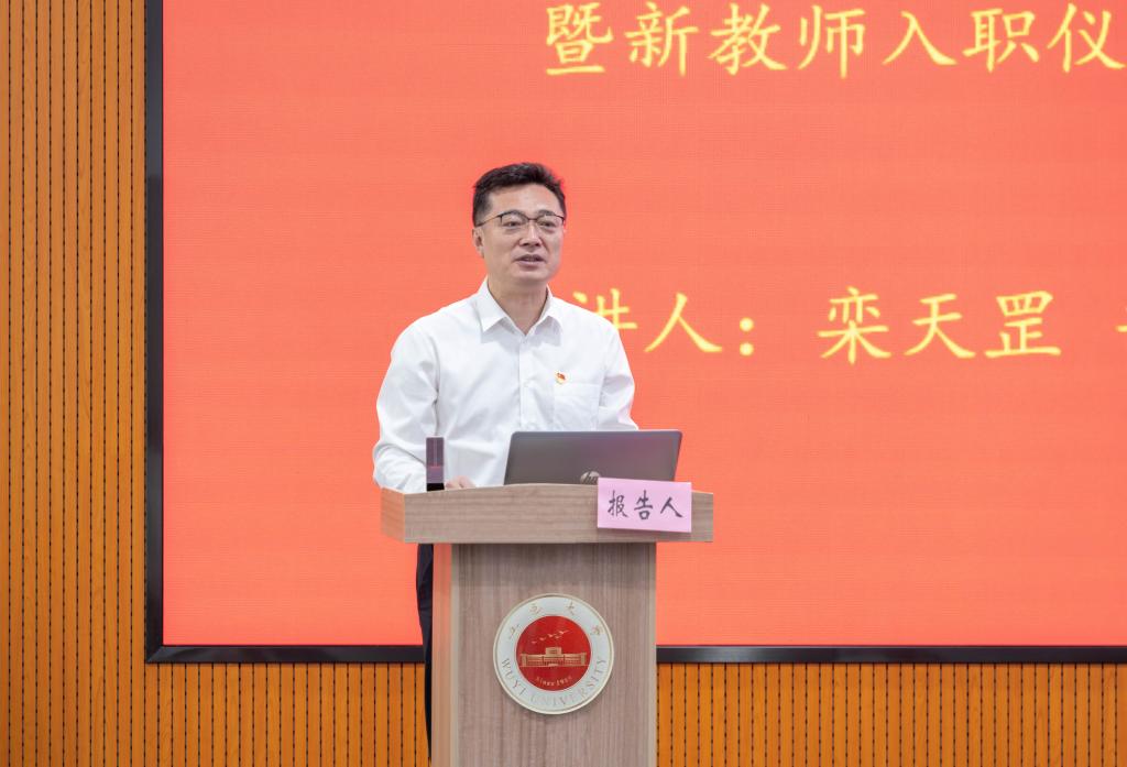 欒天罡以“立師德 鑄師魂 強師能——爭做新時代‘大先生’”為題,為新入職教師作師德師風主題報告。欒天罡從立德樹人的時代內涵、重要價值和新時代高校教師的職責使命,對新時代“立什么樣的德”“樹什么樣的人”作出了詳細解讀。他強調,要精于“五術”即道術、學術、技術、藝術和仁術,做學生為學、為事、為人的大先生;要堅持“五慎”即慎獨、慎染、慎微、慎初和慎終,嚴守師德師風“底線”。他強調,全體教師要堅持以習近平新時代中國特色社會主義思想為指導,認真學習貫徹習近平總書記關于教育的重要論述和系列重要講話、重要指示批示精神,落實“立德樹人”根本任務,按照“四有”好老師的要求,立足本職崗位,立師德,鑄師魂,強師能,爭做新時代“大先生”,全力推動新型高水平理工科大學建設邁向新高度。