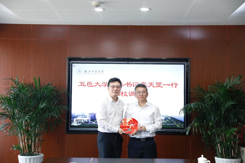 欒天罡介紹了到訪目的及我校的基本情況,對浙江工商大學(xué)的周到安排表示衷心感謝。他指出,五邑大學(xué)始終堅(jiān)持扎根僑鄉(xiāng)辦大學(xué),突出理工科的辦學(xué)定位,在應(yīng)用型人才培養(yǎng)和服務(wù)地方產(chǎn)業(yè)發(fā)展方面取得一定成效。當(dāng)前,學(xué)校正在錨定新型高水平理工科大學(xué)建設(shè)戰(zhàn)略目標(biāo),以新工科、新文科建設(shè)為“兩個(gè)抓手”,全力推進(jìn)博士學(xué)位點(diǎn)申報(bào)建設(shè)。“新工科”建設(shè)聚焦在緊扣地方重點(diǎn)發(fā)展需求的新材料、生物醫(yī)藥、智能制造、軌道交通等領(lǐng)域,積極謀劃聯(lián)動更高水平工科院校創(chuàng)新資源,進(jìn)一步做強(qiáng)學(xué)校優(yōu)勢特色學(xué)科。“新文科”建設(shè)突出“一切都以僑為主”的思路,引領(lǐng)帶動學(xué)校所有文科找準(zhǔn)新時(shí)代僑鄉(xiāng)背景下學(xué)科建設(shè)著力點(diǎn),做到特色最大化,實(shí)現(xiàn)協(xié)同發(fā)展整體提升。教育數(shù)字化改革關(guān)系到學(xué)校治理效能提升、師生獲得感提升,是高質(zhì)量推進(jìn)高水平理工科大學(xué)建設(shè)的重要引擎。希望兩校能在新文科建設(shè)、教育數(shù)字化改革等方面加強(qiáng)深度合作,更好推動學(xué)校內(nèi)涵式高質(zhì)量發(fā)展,為國家重大戰(zhàn)略和區(qū)域經(jīng)濟(jì)社會發(fā)展提供有力支撐。
